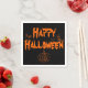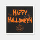 A fun Halloween text designed party paper napkin decorated with booing ghosts and a pumpkin.