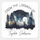 Book bookplate starry celestial night sky wood square sticker