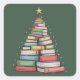 Book Christmas Tree Retro Bookworm Library Square Sticker
