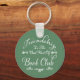 Attractive graphic design says "Friendship is the best part of Book Club". This key chain holder makes a nice gift for your Book club friends. Look for this design on other products. Green and white with modern typography.