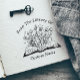From the library of or this book belongs to rubber stamp with a drawing of a beautiful Book and flowers in the centre and your custom text and name in a vintage serif font.