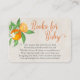 Book Request enclosure cards decorated with citrus oranges, orange blossom and greenery, in watercolor - perfect for little cutie and mimosa themes. Books for Baby is hand lettered in bouncy typography and the poem is editable. The back of the card is plain vintage cream and personalised with your name, occasion and date.