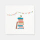 This modern and colourful napkin is ideal to celebrate a Baby Shower with a “Bring a Book for Baby” theme. It features a stack of books with a cute bookworm on top wearing big glasses and a bow tie. A pennant on top adds a festive look. This unisex napkin will help you build the baby’s library white hosting a stylish event.