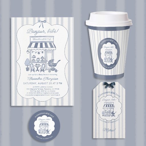 Coffee Brunch Baby Shower Theme Hand-Drawn BlueDesigned by Christine Ellis