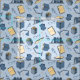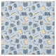 Pale blue fabric with a cool pattern of blue books, table lamps and reading glasses