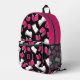 Adorable all over print backpack in pink, black and white. Patterned with book illustrations. On the front pocket you can add your own Monogram.
