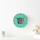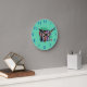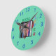 These clocks have a bright green face, slender blue numbers, and a book shelf with classic titles, a red heart and "BOOK LOVER" label.