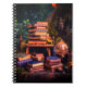 This notebook has a picture of a lot of books on it.