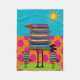 Book Lovers Fleece Blanket Whimsical Book Birds design. Artsy and fun birds created from a stack of books, orange and pink polka dots with a bright blue background and sun.