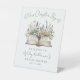 A charming welcome sign for a bridal shower inspired by the “A New Chapter Begins” theme. Centered on the sign is a watercolor open book with wildflowers and greenery spilling out, featuring soft blush pink, yellow, blue, and purple tones for a light and cheerful look.