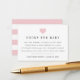Slip these petite cards into your baby shower invitations when requesting books in lieu of cards. Design features chic black lettering with a small blush pink heart illustration at the top. A sweet poem explains the book request: "just one request, we hope it's not hard // Please bring a book instead of a card // By signing your name, we'll remember and share // your sweet gift, even when you're not there." Personalise with the guest of honour's name and shower date along the bottom.