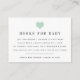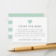 Slip these petite cards into your baby shower invitations when requesting books in lieu of cards. Gender neutral design features chic black lettering with a small mint green heart illustration at the top. A sweet poem explains the book request: "just one request, we hope it's not hard // Please bring a book instead of a card // By signing your name, we'll remember and share // your sweet gift, even when you're not there." Personalise with the guest of honour's name and shower date along the bottom.