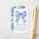 Introducing our Book Request Enclosure Cards - the perfect addition to your baby shower! Featuring a delightful blue and white chinoiserie coquette bow on a clean white background.