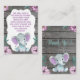 Library for Baby, Book request card for a Girl shower elephant purple, teal, turquoise and grey peanut.