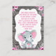 Library for Baby, Book request card for a Girl shower elephant pink and grey peanut.