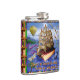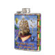 This beautiful, original fantasy flask is based around the Emily Dickinson poem that begins, "There is no Frigate like a Book To take us Lands away." The quote appears at the bottom, below a masted sailing ship made of an antique book. The words from the poem are scrawled throughout. They're torn-looking on the sails, they wrap around the balloon in the distance, and they decorate the wings of a dragonfly that has a pencil body. They even faintly appear on the faded rainbow. Meanwhile, book seagulls fly away while a killer whale and a purple squid surround the book ship. It's a pretty, surreal scene for any book lover, avid reader, writer, English teacher, librarian or bookstore owner. The background is a bookshelf pattern that wraps around the flask.