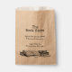 A bookplate-style small business bag with vintage letters and room for your info on the front, with art of old books and a writing quill on the front.