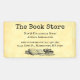 A bookplate style business banner with editable vintage serif letters and room for your info, with art of old books and a writing quill on a faux parchment background.