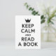Keep Calm and Read a Book postcard featuring a minimalist crown.