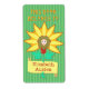 It shows a yellow-orange flower motif with a woman's face in the centre, along with green leaves and a scroll where you can add your name. The top text says, "This Book Belongs to" in a retro font. The background has light stripes in alternating shades of green.