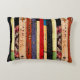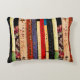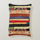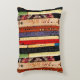 This decorative accent pillow features a shelf of colourful books. They form an interesting abstract vertical geometrical pattern in red, blue, green, purple, black, and brown. The image is repeated on the back.