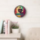 Wall Clock, 25.4 cm Round Black Wooden Frame