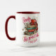A fun and cheerful Christmas holiday design showcases a stack of books topped with a pair of glasses, a red and green scarf, and a cup of hot cocoa with whipped cream. Surrounding the books are holly leaves, candles, and stars. The colourful text reads: "Books, blankets, and hot cocoa." This design is available on a variety of products, making it a perfect gift for book lovers.