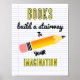 Books build a stairway to your imagination school library classroom book corner poster. poster colorful -designed by The Arty Apples