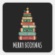 Funny Christmas tree forming by books, with Christmas ornaments and a Christmas star, and the quote "Merry Bookmas". A cool and funny kind to celebrate Christmas eve.