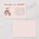 An enchanting watercolor illustration featuring a pair of baby ballerina shoes hanging from a pink bow, painted in watercolor with gold glitter accents (these are digital effects, not real foil) decorates this elegant and adorable baby girl shower "books for baby" enclosure card (matching items available). Perfect for a ballet themed baby girl shower invitation, for a mum who loves the little ballerina idea or loves ballet herself.
