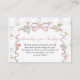 This elegant “Books for Baby” baby shower insert card features a romantic vintage floral pattern with soft blush pink bows, delicate blue ribbon accents, and dainty botanical illustrations inspired by heirloom wallpaper designs. The graceful script typography paired with classic serif text creates a timeless, feminine look that perfectly complements a “Baby in Bloom” baby shower theme.