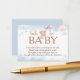 A sweet and charming baby shower design featuring an adorable teddy bear floating with pastel blue and blush balloons among soft clouds and star accents. The “Books for Baby” wording makes it a lovely choice for encouraging guests to bring a favorite book for the little one. With its gentle watercolor style and dreamy pastel palette, this design is perfect for a baby boy celebration or a soft teddy bear baby shower theme.