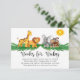 The card includes illustrations of charming wild animals, perfect for a baby boy or girl.