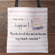 “Books hold the adventures my heart needed.” Tote Bag