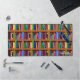 This original desk mat design for bibliophiles / proud bookworms has a bookshelf pattern made up of 25 repeating books that lean or stand straight, all on a shelf with a wooden look. This mat is perfect for a librarian, book collector, English teacher, writer, novelist, editor, or any avid reader. Use the easy template to personalise the lower right corner with your name (or simply delete the sample name "Samantha" to order without personalisation).