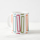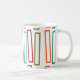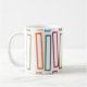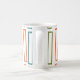 This mug has a mid-century modern design of larger repeating rectangles in teal, orange, beet and orange on a field of white. If you like the design but prefer different colours, message me.