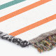 This throw blanket has a mid-century modern design of repeating rectangles in teal, orange, beet and orange on a field of white. If you like the design but prefer different colours, message me.