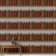 This wallpaper is a bookshelf trompe l’œil. ( optical illusion )