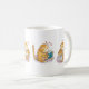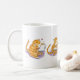 A bookstore cat finds a good book to buy and take home to read in a cosy place while having a beverage in a mug.