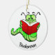 Bookworm Book Lover Reader Design Ornament with customisable background colour and text.