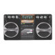 Boombox is a colloquial expression for a portable cassette or CD player with two or more loudspeakers. Other terms known are ghetto blaster, jambox or radio-cassette. It is a device capable of receiving radio stations and playing recorded music (usually cassettes or CDs), usually at relatively high volume. Many models are also capable of recording (onto cassette) from radio and (sometimes) other sources. Designed for portability, most boomboxes can be powered by batteries, as well as by line current.