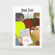 A card with a funny cartoon about a student's clever answer to a written test. Original artwork by DB cartoons.