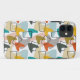 This phone case has a mid-century modern design of boomerang shapes and cork shapes in retro colours.