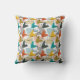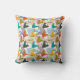 This throw pillow has a mid-century modern design of boomerang shapes and cork shapes in retro colours.