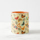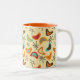This mug has a mid-century modern design of boomerangs in 70s colours and stars.