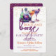 A gorgeous purple and orange 'boos and booze' Halloween party invitation. This fun purple and orange design features spooky magic potion bottles and two cocktail glasses. Easy to customise with your own Halloween party details.