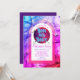 Modern Halloween design featuring bat and spiders and red full moon on an arch in artistic smocked colourful background in red, purple pink and blue. The perfect way to invite guests to your Halloween Boos and Booze party. Personalise it and scare everybody!