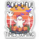Add some Halloween spirit to your belongings with our charming "Boo-tiful Times Are Coming" sticker. It features a cute ghost, pumpkins, and bats, and is perfect for decorating your laptop, water bottle, or any other item you want to show your love for Halloween.