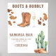 This design features modern neutral colours in a watercolor application. Design in cow print, glass of champagne, desert cactus, cowboy boots.