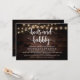 Modern Calligraphy Bridal shower invitation card (Boots and Bubbly), in rustic dark wood string lights design themed. Invite the guests with this perfect Invitation Card. Add your bridal shower details in matching wording.